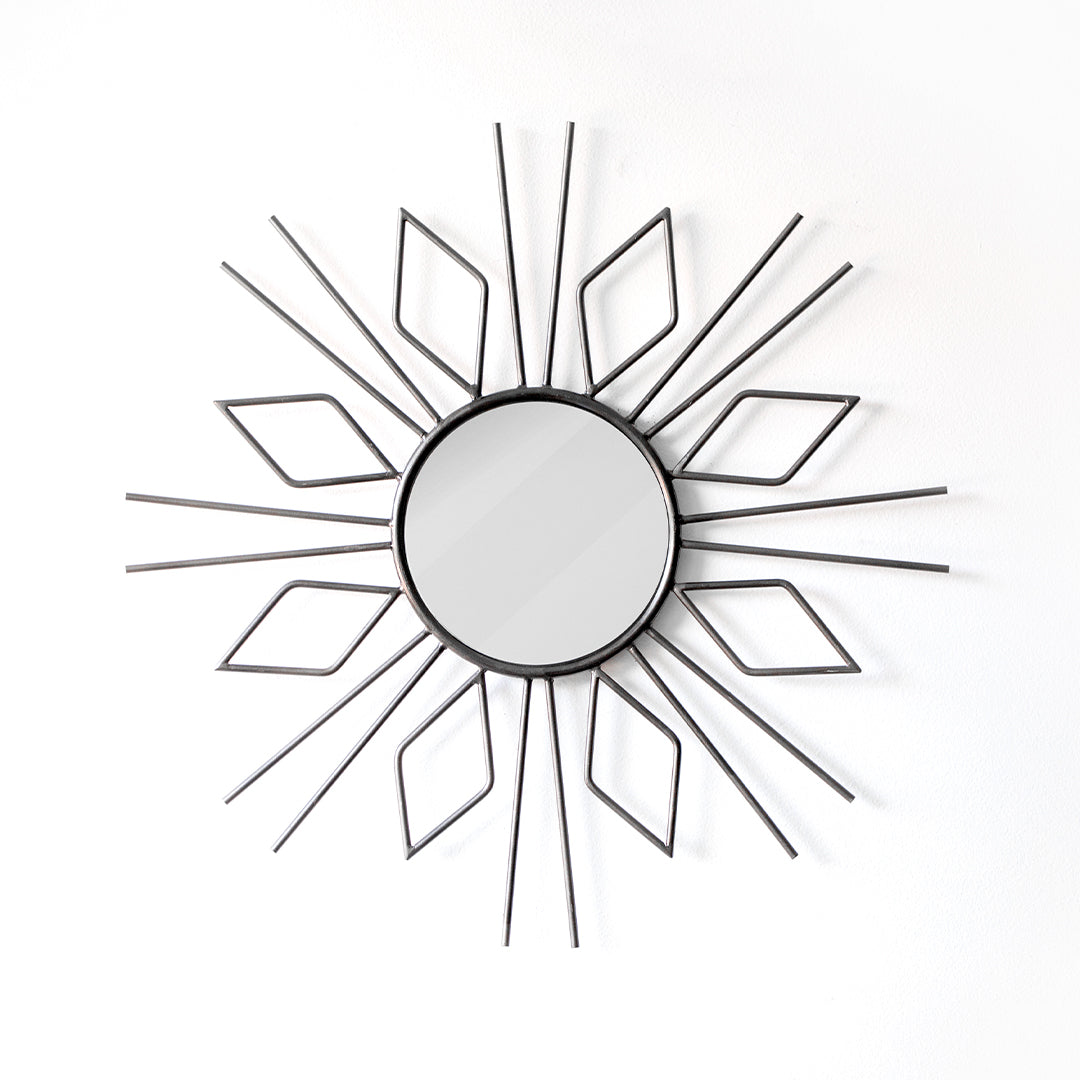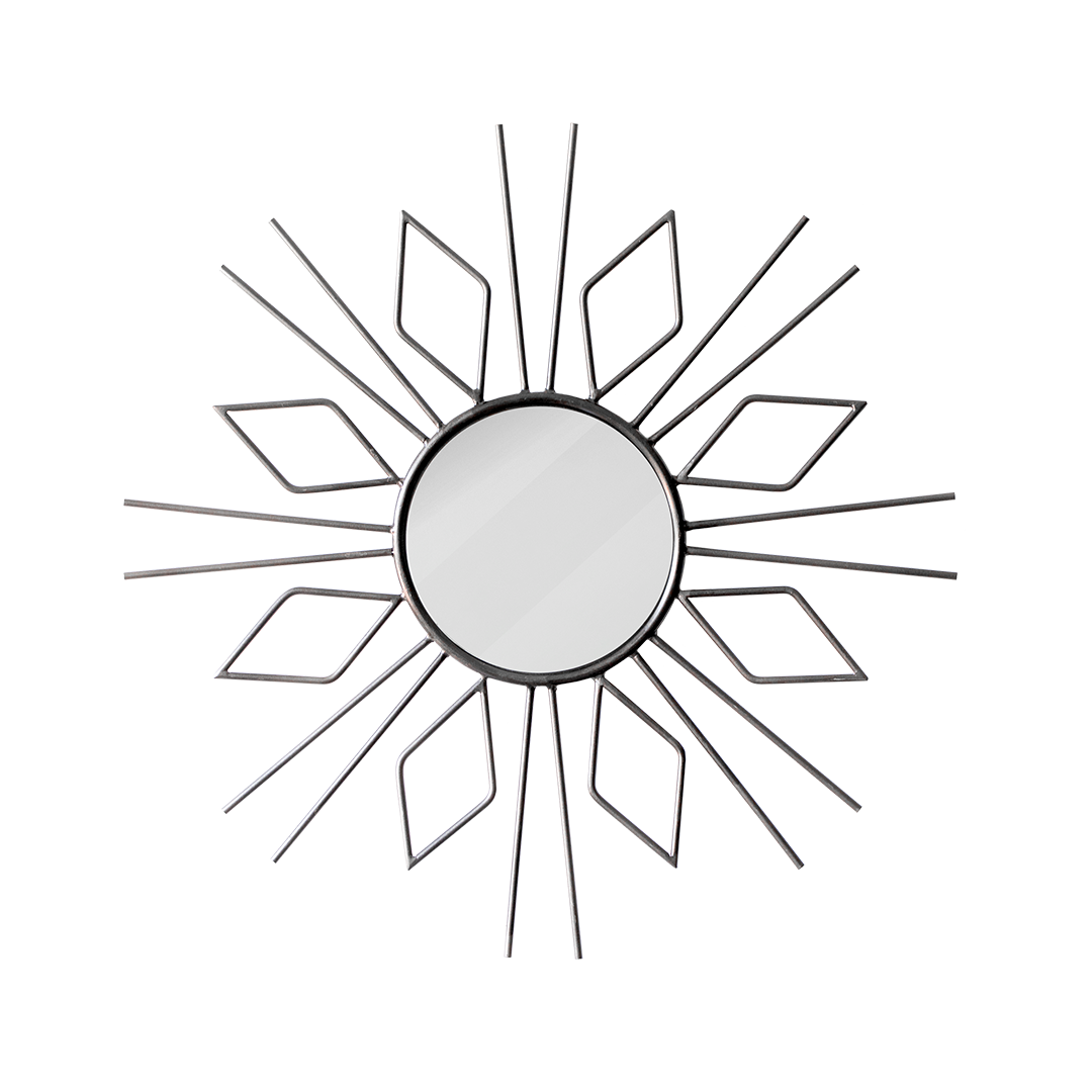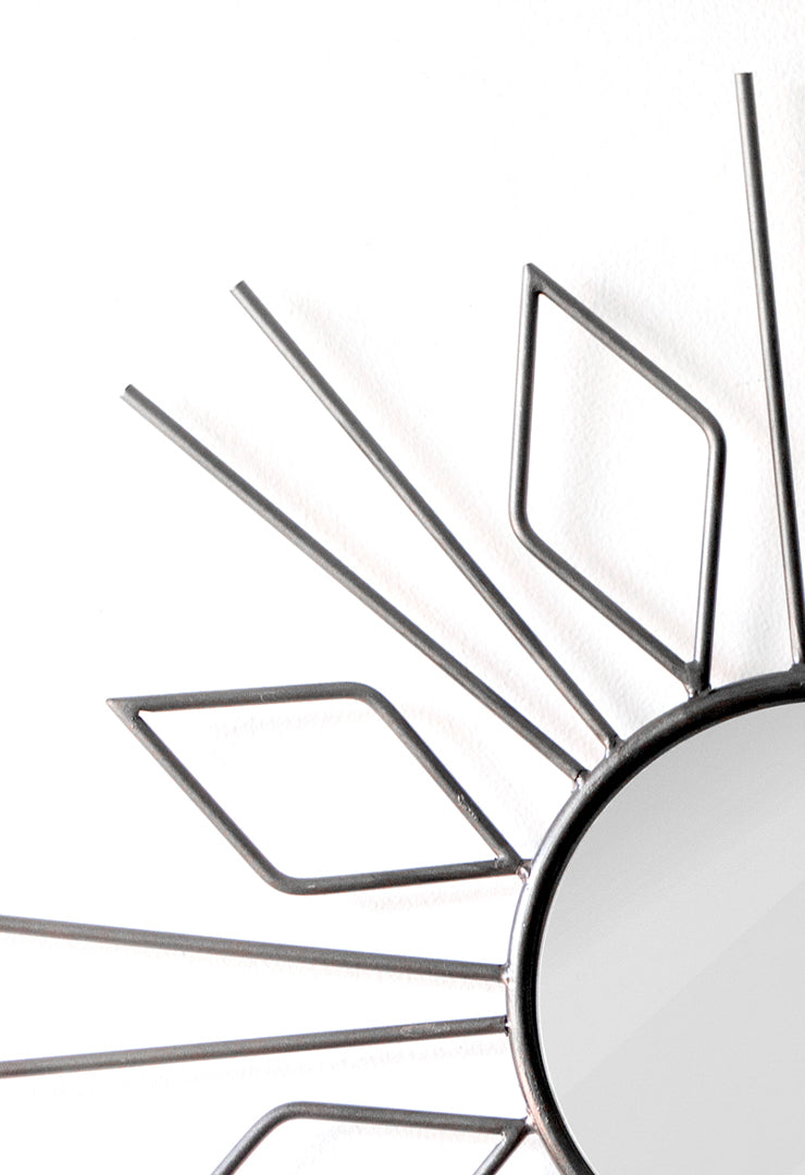 Estructura de metal natural con espejo natural. Pieza elaborada y soldada a mano de carácter imperfecto.