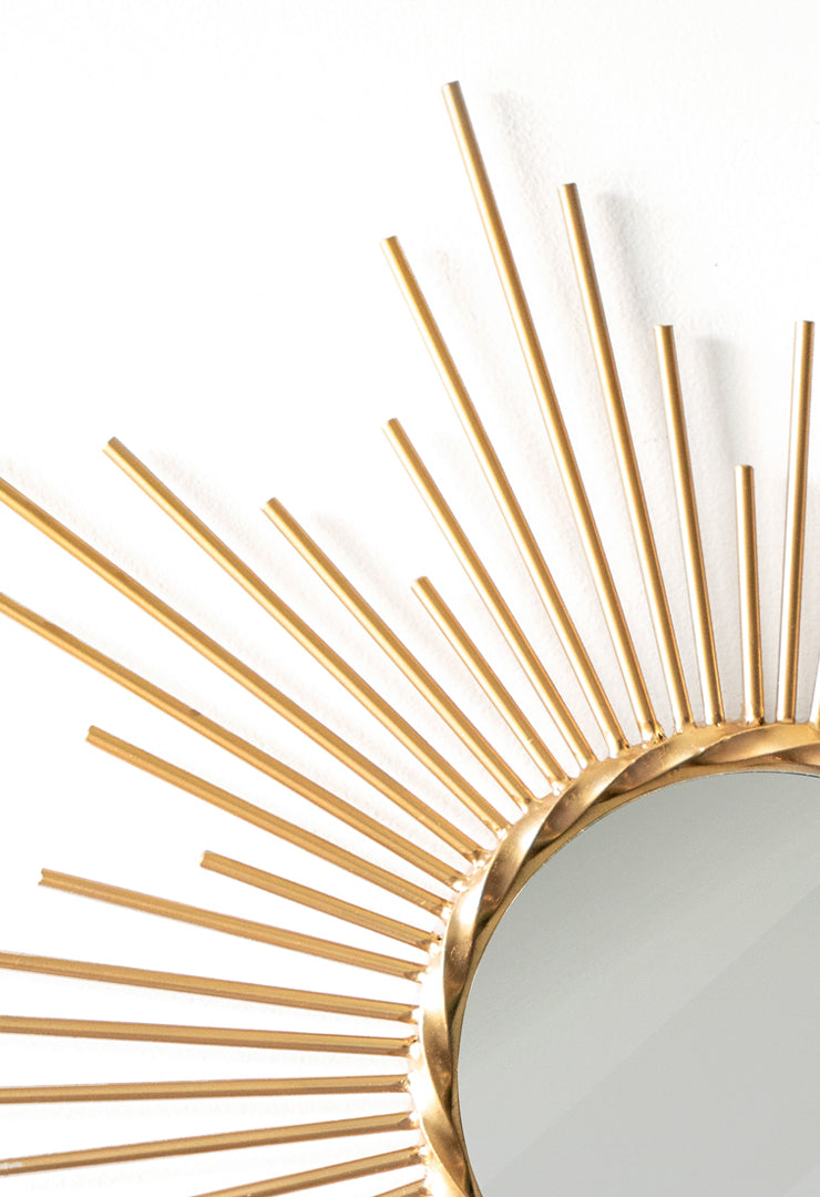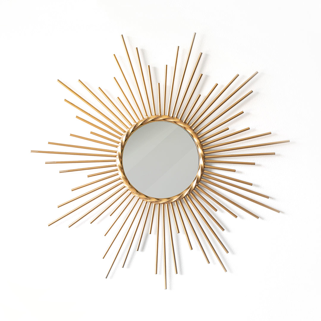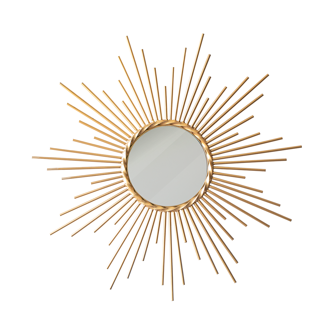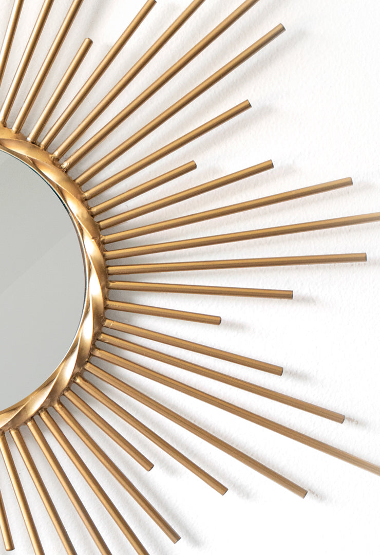 Estructura de metal natural colro dorado con espejo natural. Pieza soldada y pintada a mano de carácter imperfecto.
