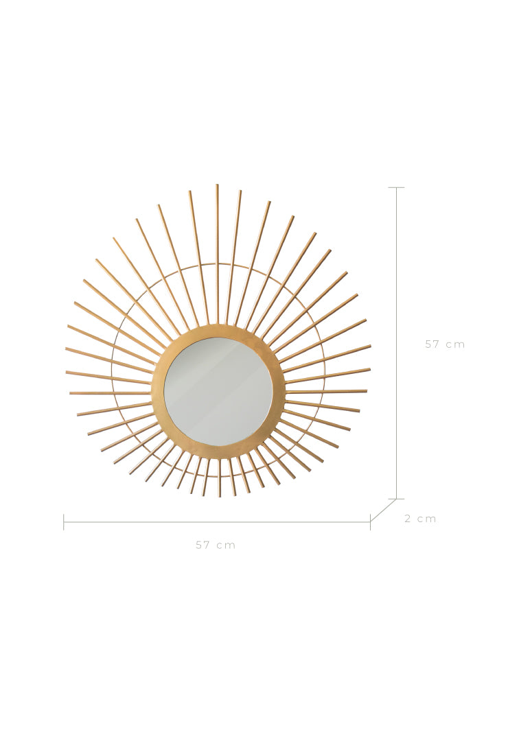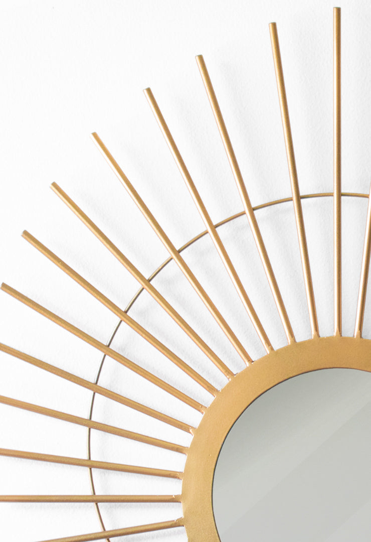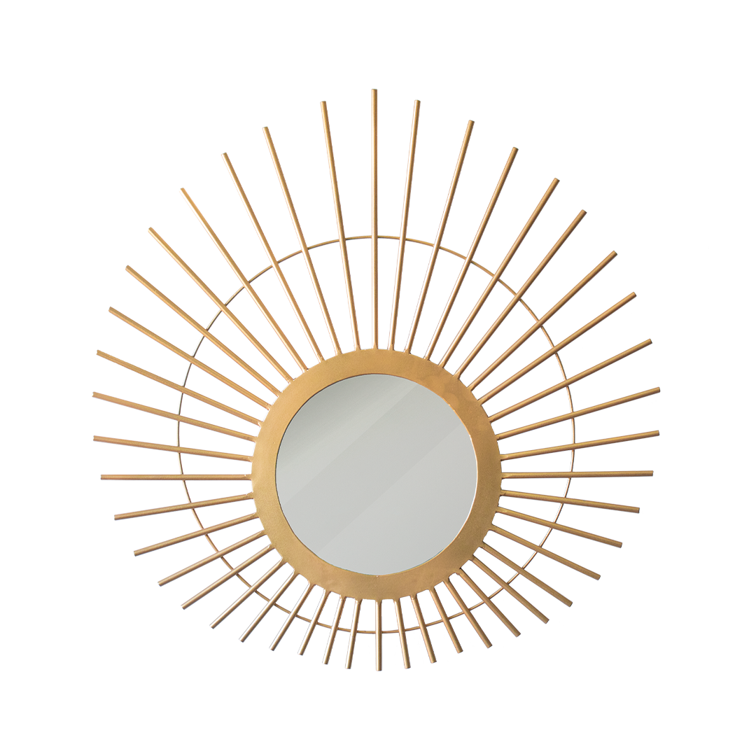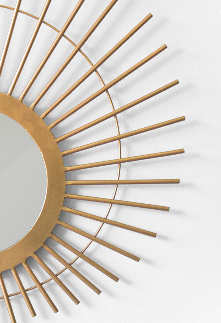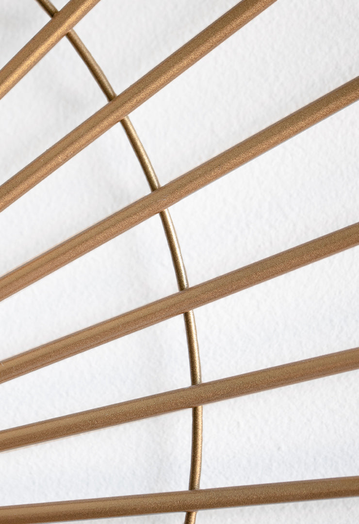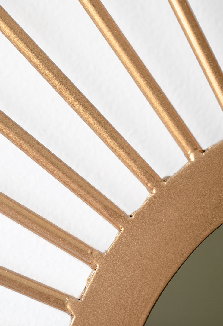 Estructura de metal natural color dorado con espejo natural. Pieza soldada y pintada a mano de carácter imperfecto.